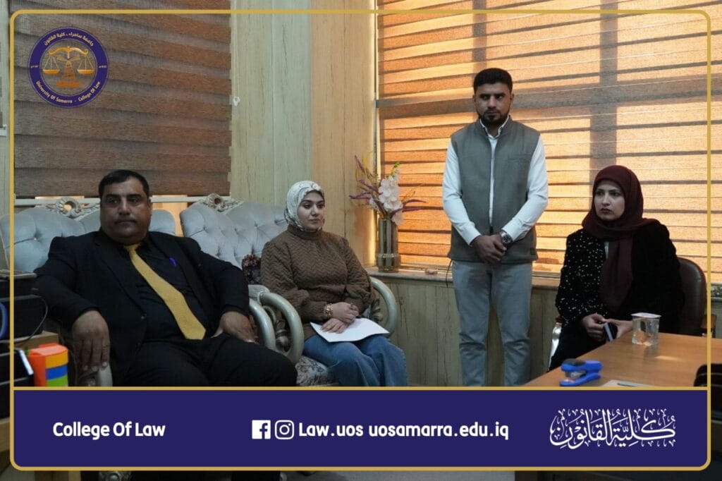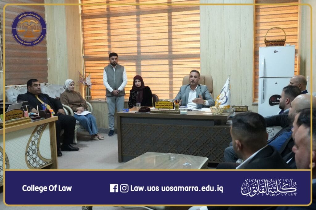 عقد الأستاذ المساعد الدكتور عدنان ضامن مهدي (معاون العميد للشؤون الإدارية) في كلية القانون بجامعة سامراء، اجتماعاً موسعاً مع الكادر الوظيفي والإداري في الكلية، بهدف وضع خطة عمل متكاملة لتنظيم وإدارة الشعب والوحدات الإدارية.