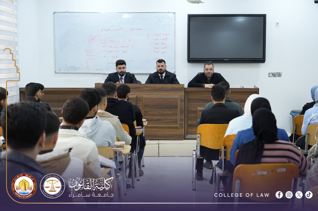 نظمت وحدة حقوق الإنسان في كلية القانون بجامعة سامراء، ندوة علمية بعنوان “الإطار القانوني لحماية حقوق الإنسان”، ألقاها المدرس المساعد (سعد مهدي صالح) رئيسًا، والمدرس المساعد (صالح ابراهيم صالح) عضوًا، والمدرس المساعد (ماهر عبدالرحيم عبدالله) عضوًا ومقررًا.