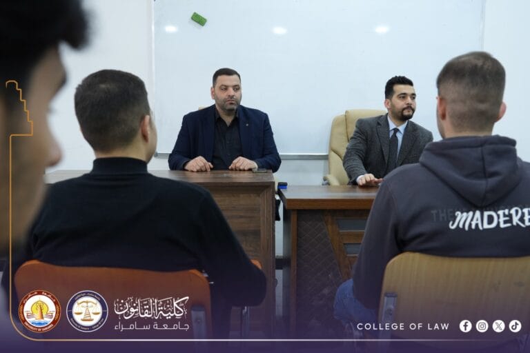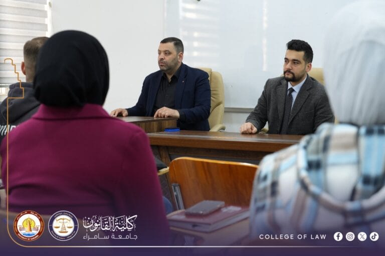 نظمت وحدة حقوق الانسان في كلية القانون بجامعة سامراء، ورشة عمل بعنوان “نشر الوعي القانوني في المجتمع”، قدمها المدرس الدكتور (ابراهيم خالد عبدالله)، والمدرس المساعد (ماهر عبدالرحيم عبدالله)، والمدرس المساعد (سجاد محمد عزيز).