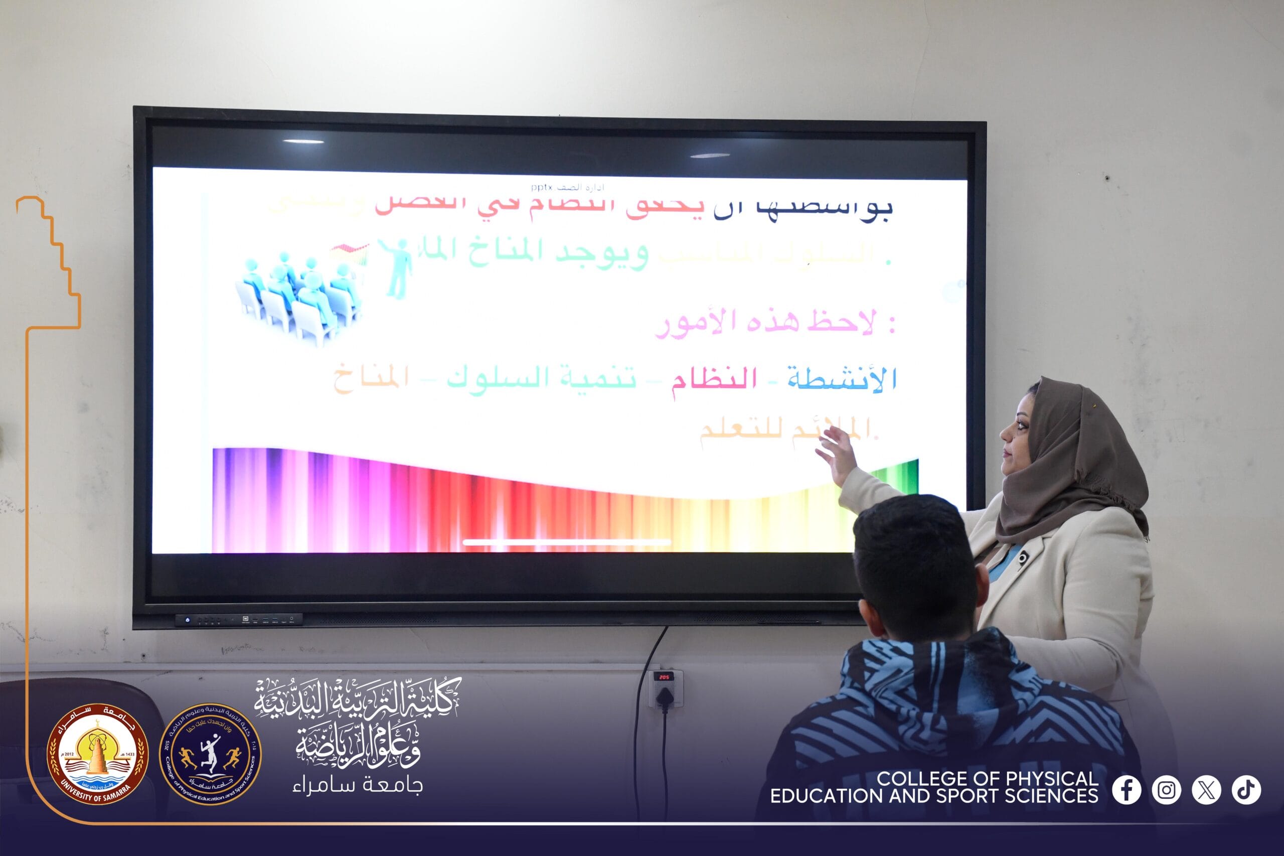 نظمت وحدة التعليم المستمر في كلية التربية البدنية وعلوم الرياضة بجامعة سامراء، ندوة بعنوان ( إدارة الصف )، قدمتها المدرسة الدكتورة ( أسيل ابراهيم شهاب ) إحدى تدريسيات الكلية.