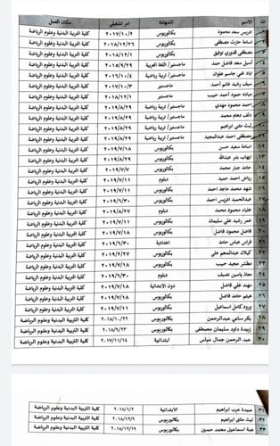 الأخوة والأساتذة الأعزاء المدرجة اسماؤهم في القائمة المرفقة من الأجور اليومية الذي تم تحويلهم إلى عقود تنسب حضوركم يوم غدٍ الثلاثاء الموافق ٥ / ١ / ٢٠٢١إلى عمادة كلية التربية البدنية وعلوم الرياضة مستصحبين الاوليات الخاصة بكم من وثيقة التخرج والمستمسكات الشخصية لغرض تدقيق اولياتكم والتعاقد معكم في عمادة الكلية من قبل لجنة خاصة من رئاسة الجامعة