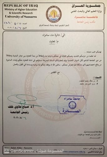 تعاون بين جامعة سامراء ودائرة ماء سامراء